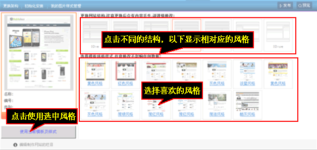 点击每种网站结构对下都会显示相应的